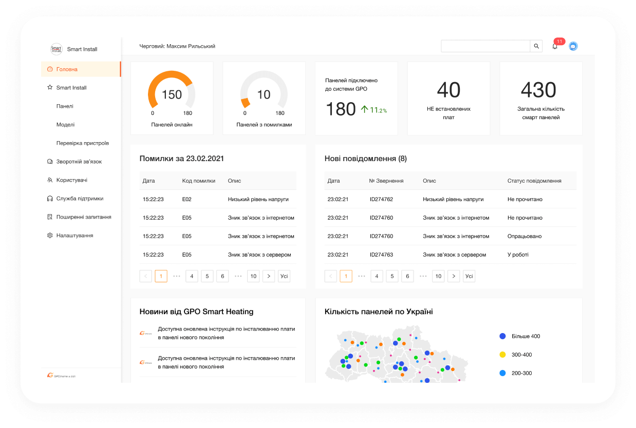 Тепер ви бачите повний цикл життя панелі – від виготовлення до її використання клієнтом. Ваша статистика продажів та використання панелей завжди у швидкому доступі!